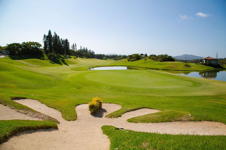 구릉 코스로 레이아웃 된 오리온아라시야마 골프클럽은 전략성을 요구하는 아웃 코스와, 비거리를 요구하는 인 코스로 구성되어 있다. 아웃 코스는 기복의 높고 낮음이 있는 편이며, 페어웨이도 갈수록 좁아지는 형태이다. 특히 2번 홀과 3번 홀은 비거리보다는 공의 방향을 더 중요시 생각해야 한다. 인 코스는 5개의 연못을 중심으로 펼쳐진 코스로, 특히 12번 홀과 15번 홀은 연못이 만드는 아름다운 풍경이 예술이다. 하지만 연못을 넘겨야 하는 것을 생각하면 부담이 될 수밖에 없는 요소. 곳곳에 벙커도 설치되어 있어 확실한 기술이 요구되는 코스이다. |