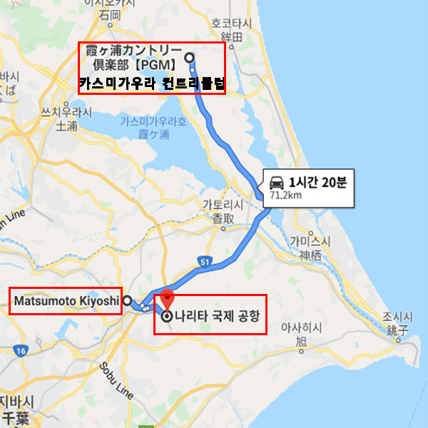 골프장 주변드럭스토어 마츠모토키요시에서 차로 약 1시간 6분 소요 |