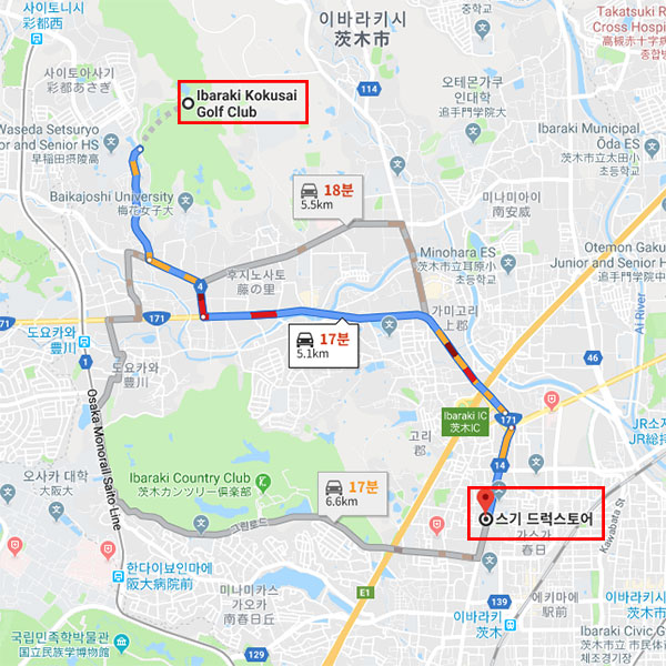 [PGM] 이바라키 국제골프클럽 간사이 국제공항에서 차로 약 1시간 16분 소요 [PGM] 이바라키 국제골프클럽 스기드럭스토어에서 차로 약 17분 소요