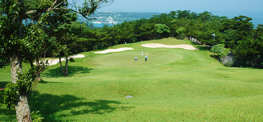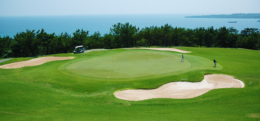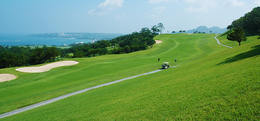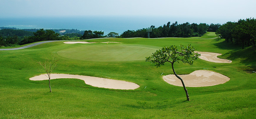 전 홀에서 오키나와 비치의 장관을 전망할 수 있는 구릉타입의 18홀 코스