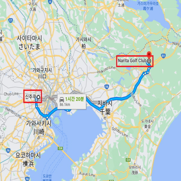 골프장 주변 : 신주쿠 역에서 차로 약 1시간 20분 소요