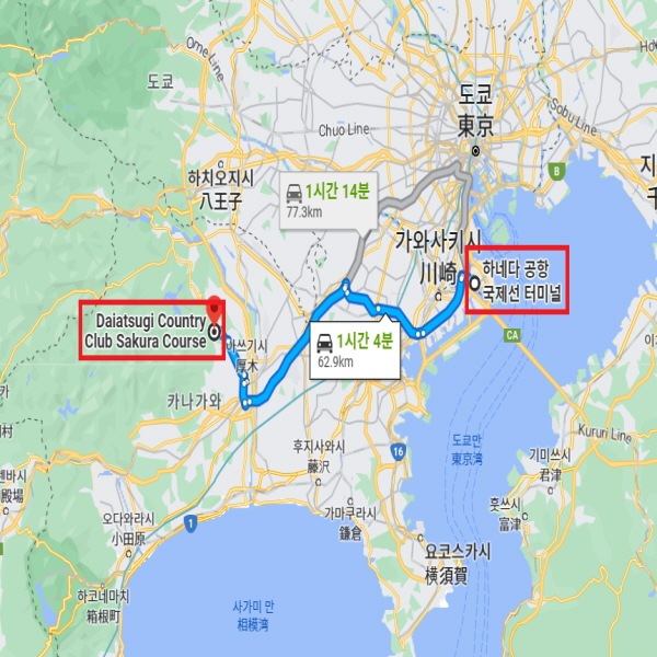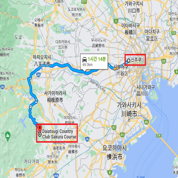 골프장 주변 : 신주쿠 역에서 차로 약 1시간 14분 소요