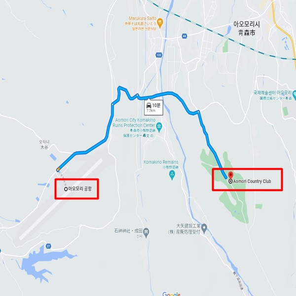 아오모리 공항에서 차로 약 10분 소요