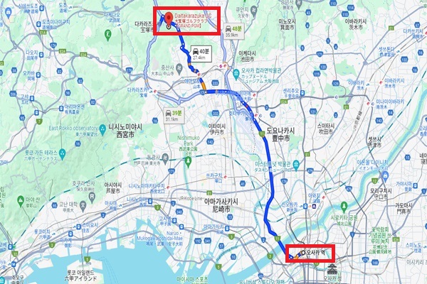 오사카역에서 자동차로 약 40분 소요