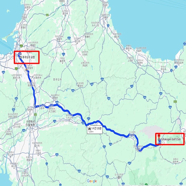 엑세스 공항 기준 : 후쿠오카 공항에서 차로 약 1시간 35분 소요