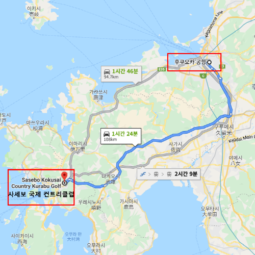 후쿠오카 공항에서 차로 1시간 25분 소요