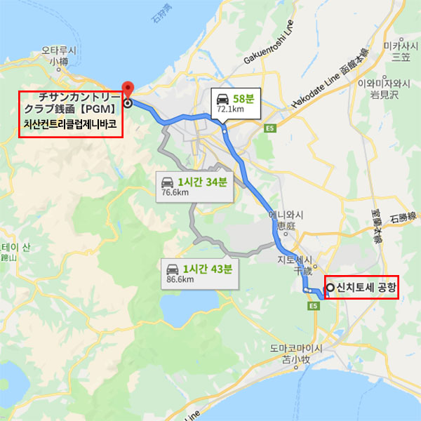 [PGM] 치산 컨트리클럽 제니바코 신치토세 공항에서 차로 약 1시간30분 소요 [PGM] 치산 컨트리클럽 제니바코 아크스 슈퍼마켓에서 차로 약 15분 소요