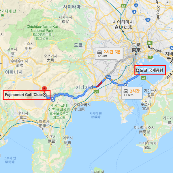 하네다 공항에서 차로 약 2시간 소요