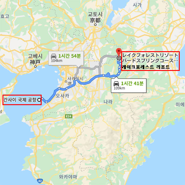 엑세스 공항 기준 : 간사이 공항에서 차로 약 1시간 40분 소요