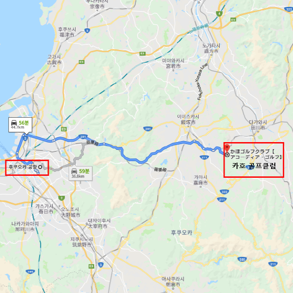 엑세스 공항 기준 : 후쿠오카 공항에서 차로 약 56분 소요